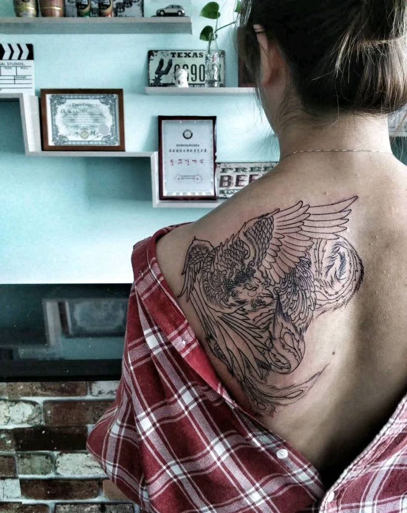 传统凤凰纹身图片_背部新传统纹身图案