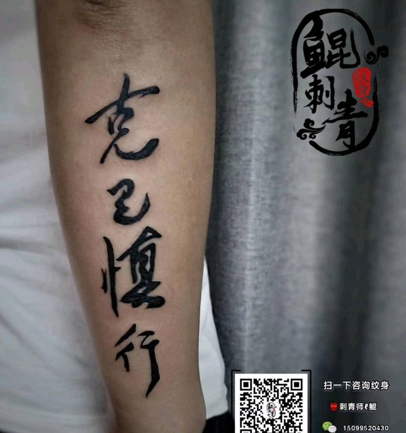 当前位置: 首页 >新疆乌鲁木齐市纹身店-鲲刺青纹身工作室纹身图案>汉字纹身图片_手臂图腾花体字纹身图案