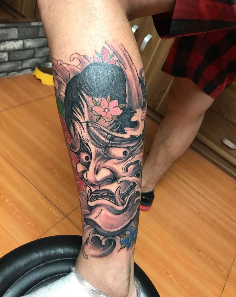 • T网红王老大花腿龙纹身图片_腿部新传统纹身图案