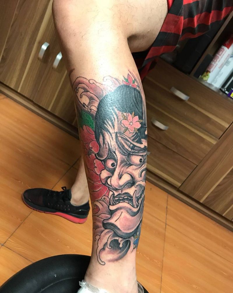 • T网红王老大花腿龙纹身图片_腿部新传统纹身图案