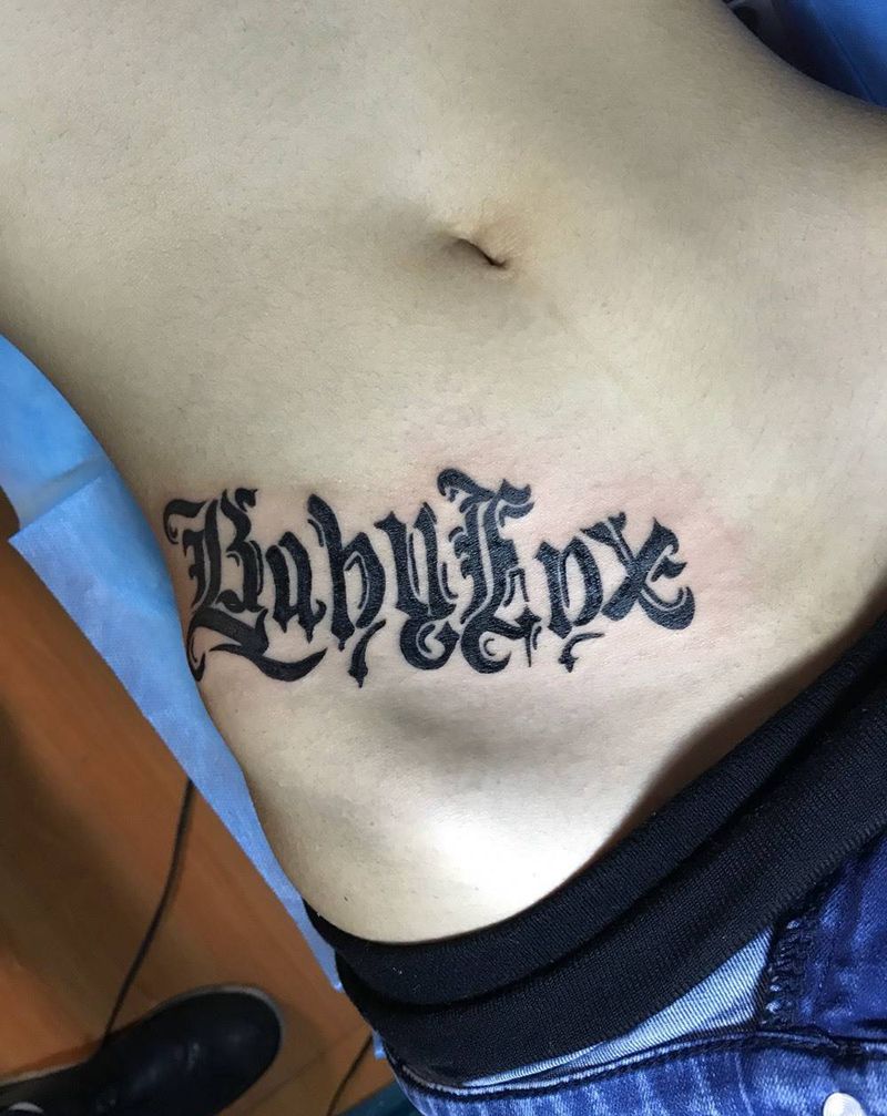 • T关于私处得爱!纹身图片_成品腹部清新字符图腾纹身图案