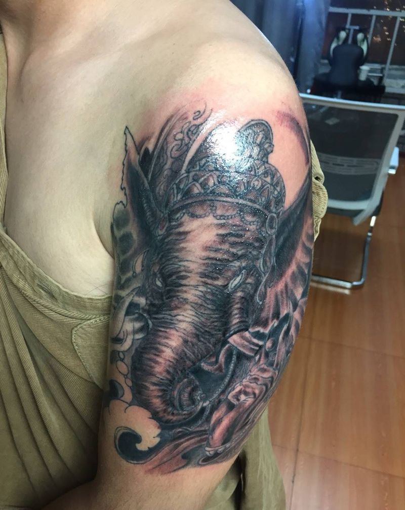 当前位置: 首页 >新疆乌鲁木齐市纹身店-肆義刺青纹身图案>象神纹身图片