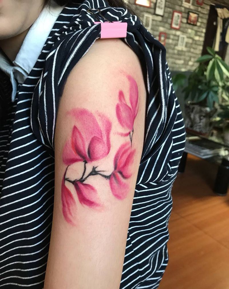 当前位置: 首页 >新疆乌鲁木齐市纹身店-肆義刺青纹身图案>水墨花纹身图片