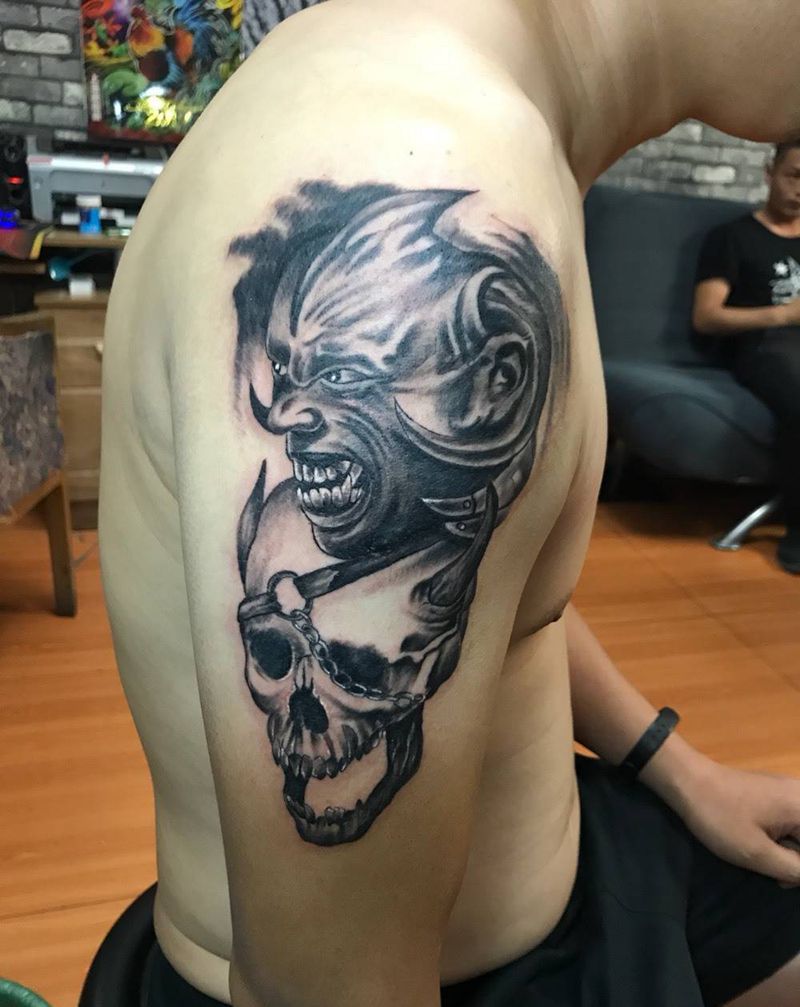 • H传统钟馗纹身 钟馗过肩纹身图案