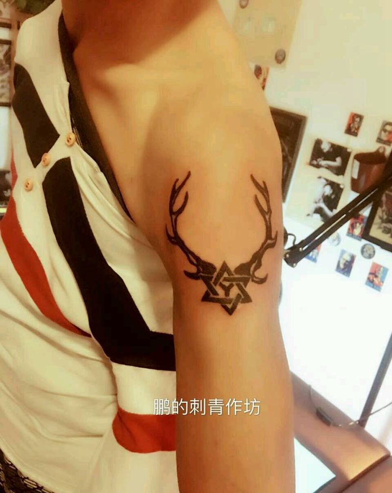 当前位置: 首页 >新疆乌鲁木齐市纹身店-捌零玖刺青纹身图案>六芒星鹿角纹身图片