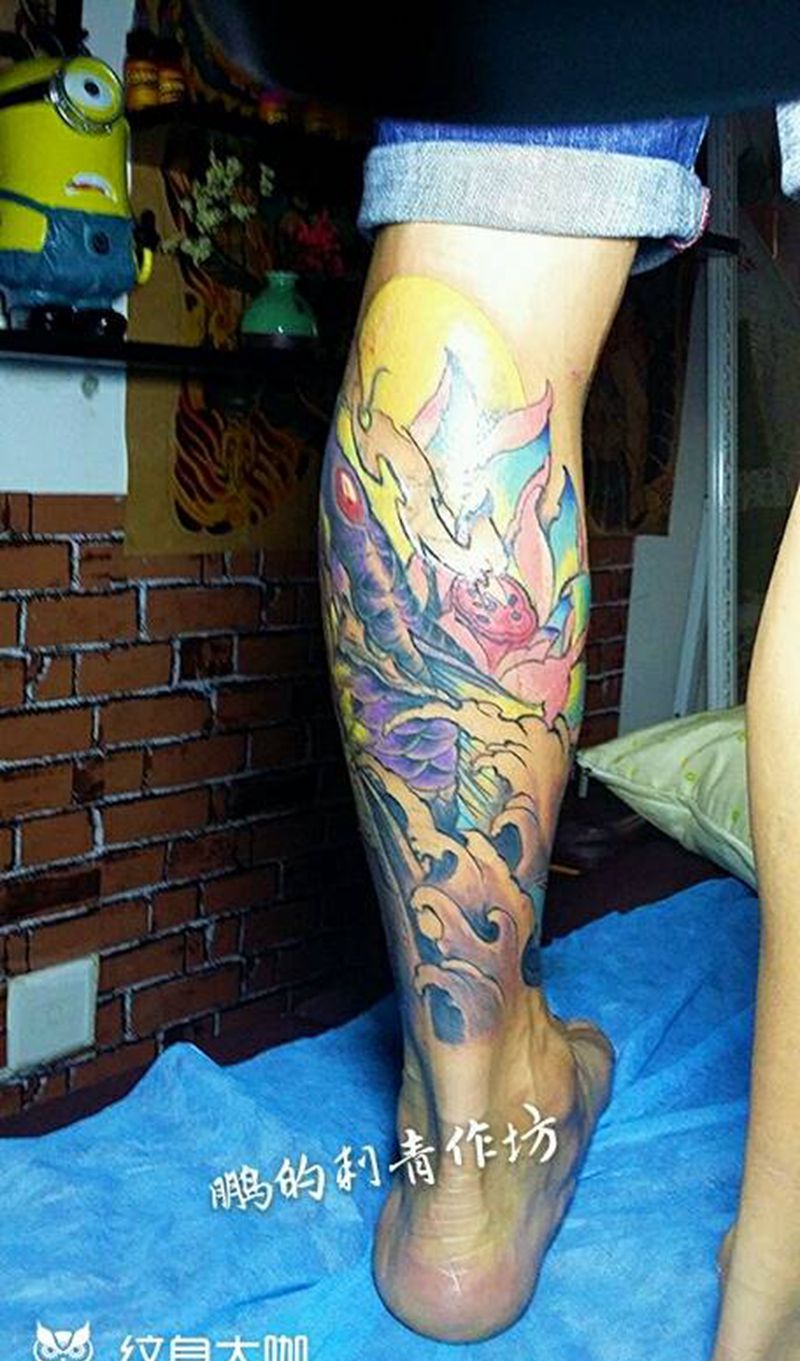 • T网红王老大花腿龙纹身图片_腿部新传统纹身图案