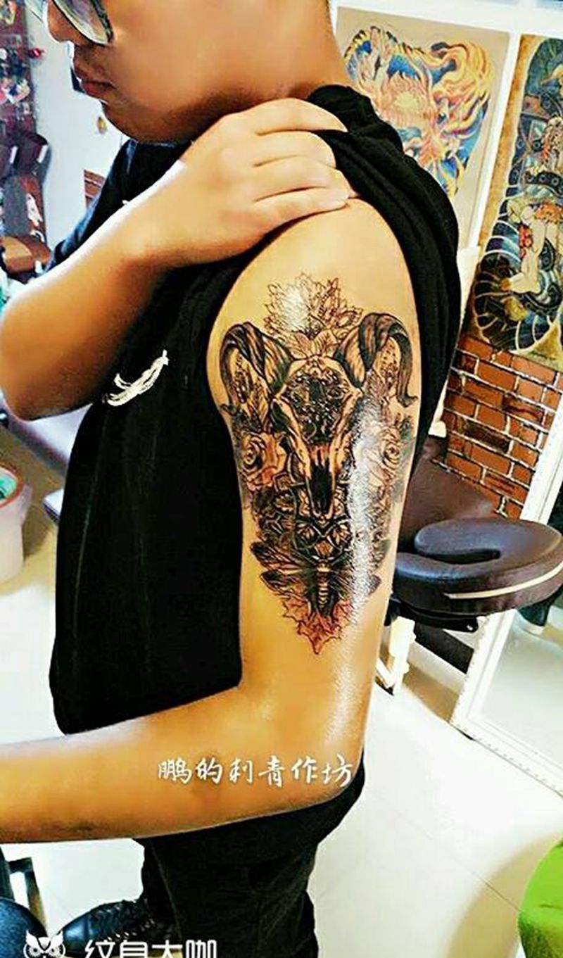 当前位置: 首页 >新疆乌鲁木齐市纹身店-捌零玖刺青纹身图案>暗黑羊头纹身图片_手臂欧美动物成品纹身图案