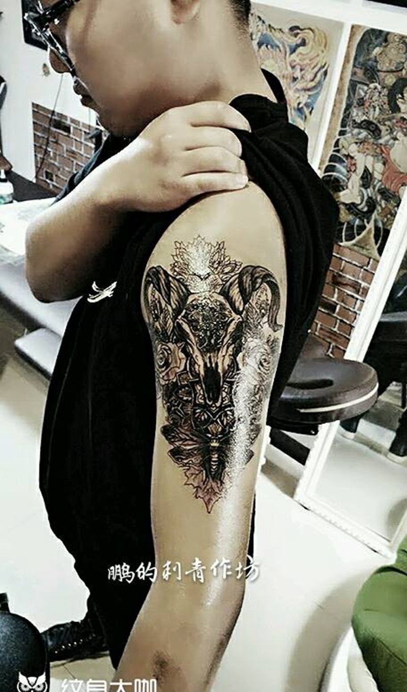 当前位置: 首页 >新疆乌鲁木齐市纹身店-捌零玖刺青纹身图案>暗黑羊头纹身图片_手臂欧美动物成品纹身图案
