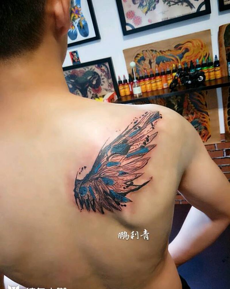 • 纹身吧推荐的披肩图腾半胛纹身图案作品展示