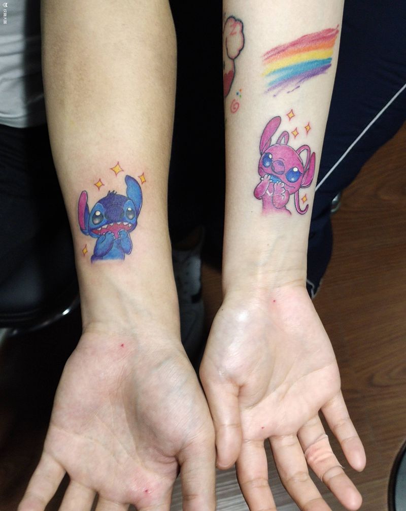 情侣 史迪仔纹身图片_手臂欧美写实纹身图案