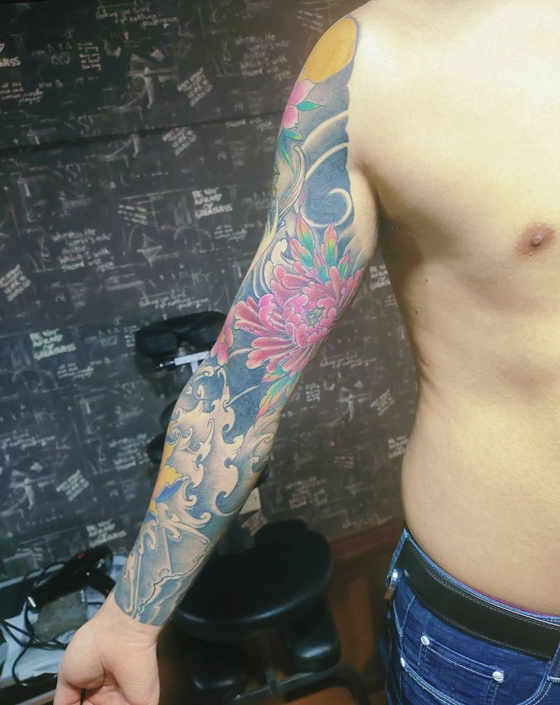 当前位置: 首页 >新疆乌鲁木齐市纹身店-潮柒刺青纹身图案>新传统 花臂纹身图片_手臂新传统纹身图案