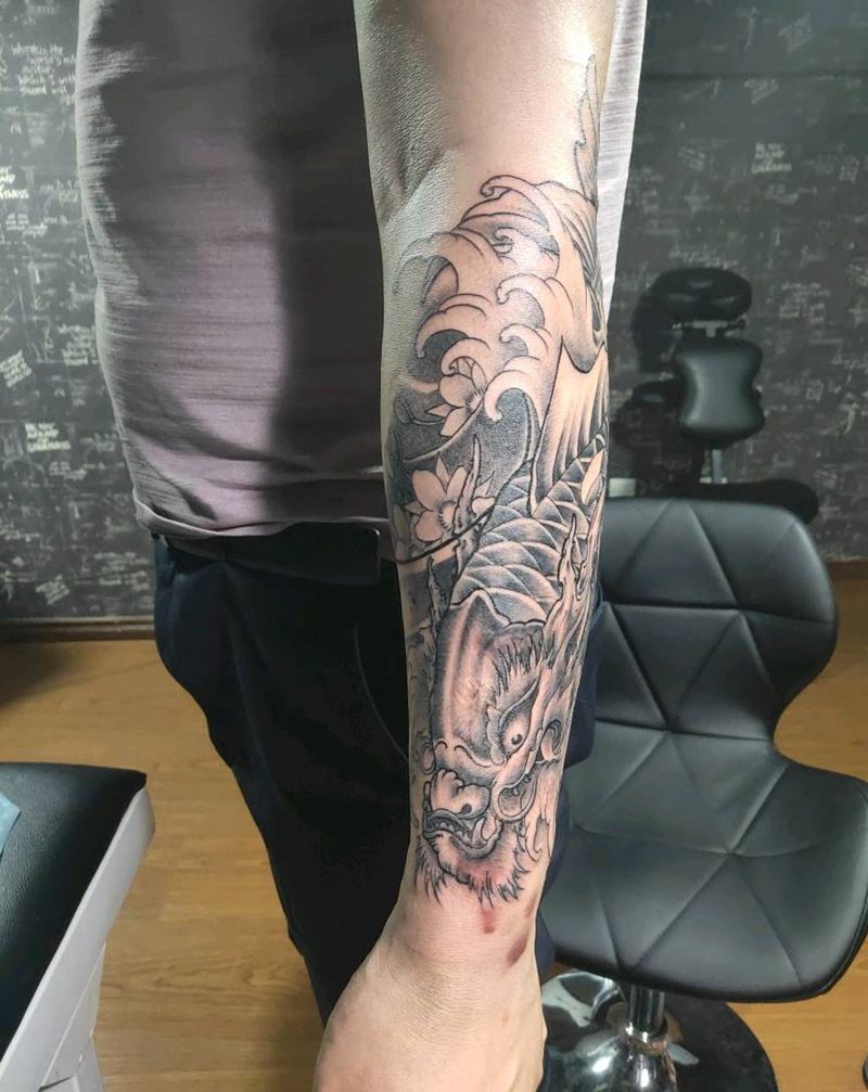 当前位置: 首页 >新疆乌鲁木齐市纹身店-潮柒刺青纹身图案>小臂鳌纹身图片_手臂新传统纹身图案