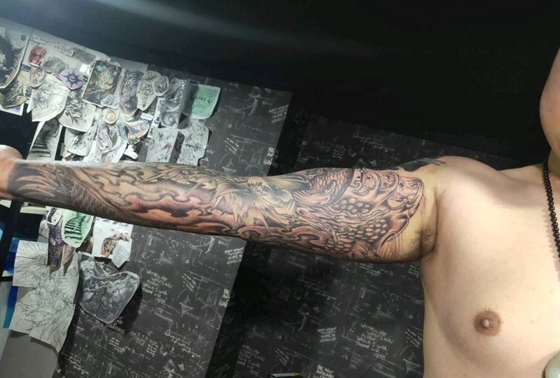 当前位置: 首页 >新疆乌鲁木齐市纹身店-潮柒刺青纹身图案>传统花臂纹身图片_手臂新传统纹身图案