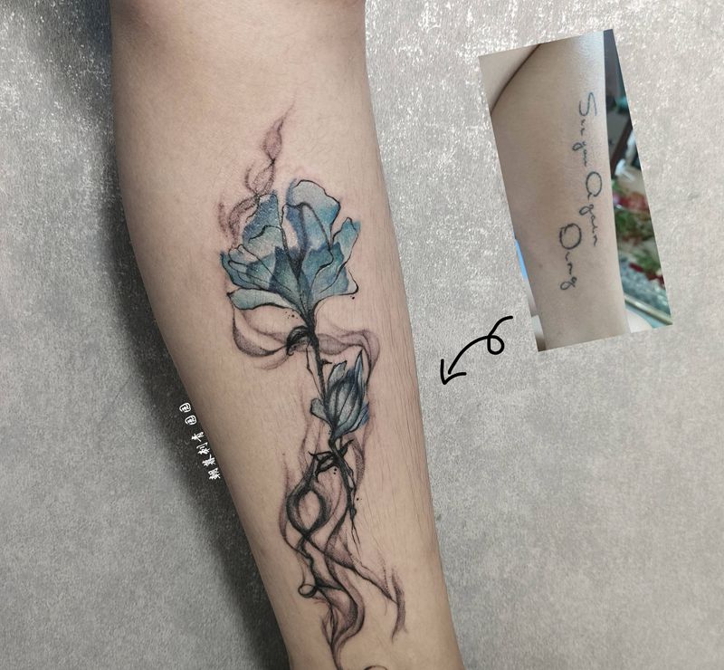 当前位置: 首页 >新疆博尔塔拉蒙古自治州纹身店-朝暮刺青纹身图案>遮盖纹身图片_腰部水墨水彩字母遮盖纹身图案