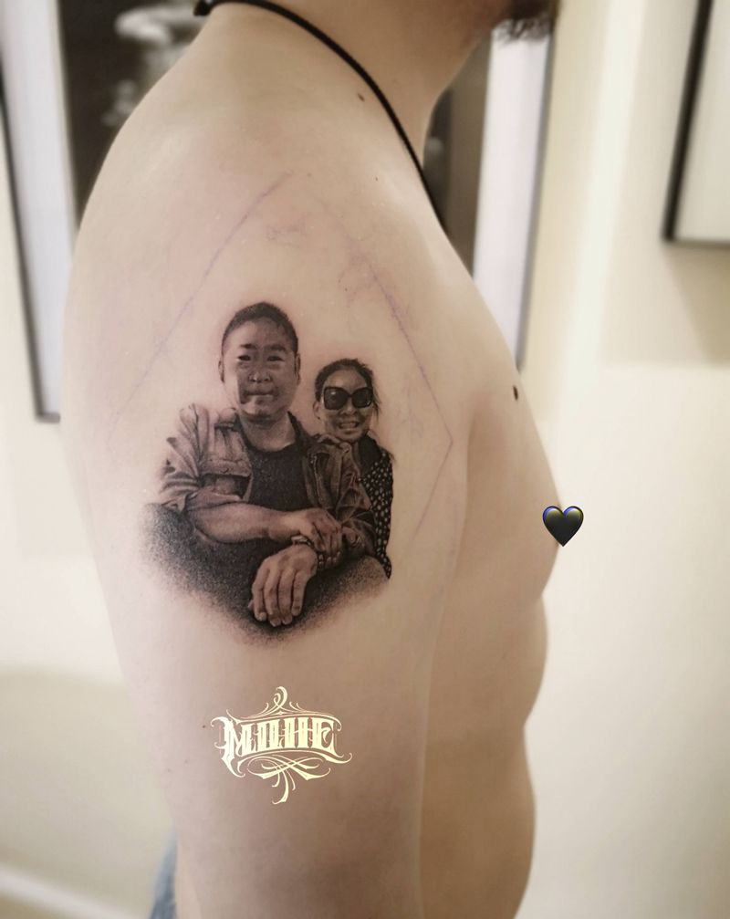 当前位置: 首页 >新疆乌鲁木齐市纹身店-摩诃刺青処纹身图案>写实合影肖像纹身图片_写实纹身图案