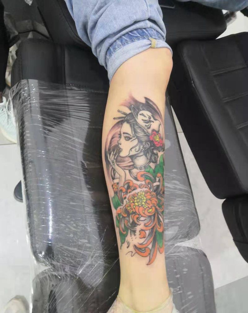 当前位置: 首页 >新疆博尔塔拉蒙古自治州纹身店-墨刻刺青纹身图案>艺妓纹身图片_腿部纹身图案