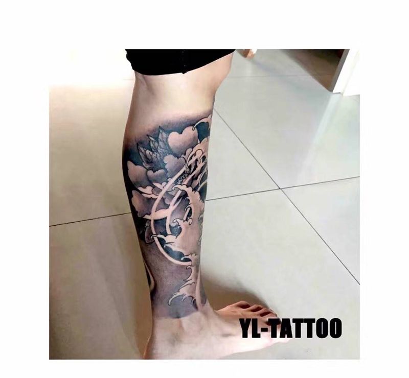 • T网红王老大花腿龙纹身图片_腿部新传统纹身图案