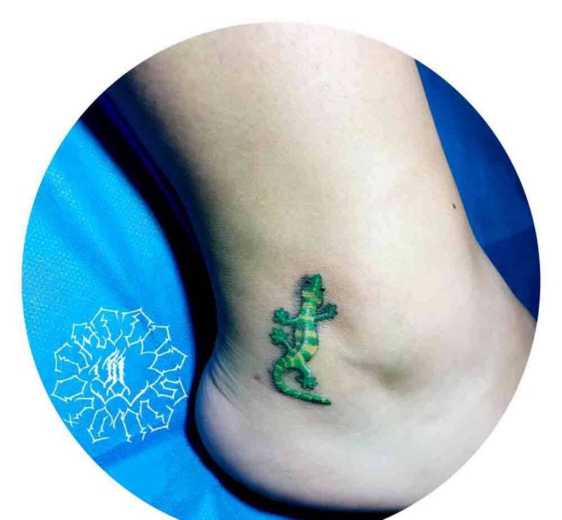脚踝小蜥蜴纹身图片_成品腿部清新动物纹身图案