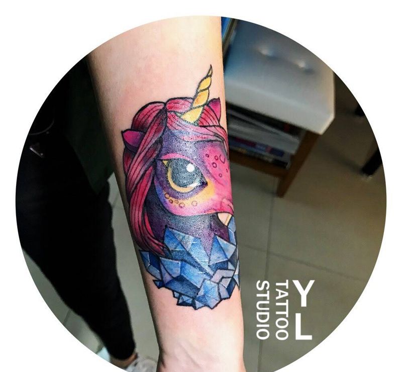 (旧图遮盖)独角兽纹身图片_成品手臂欧美清新纹身图案