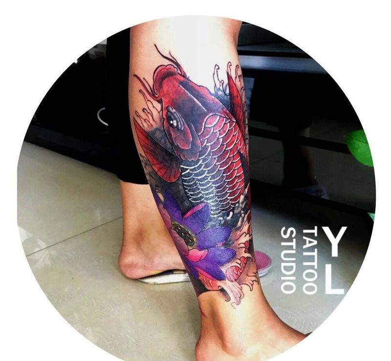 • T网红王老大花腿龙纹身图片_腿部新传统纹身图案