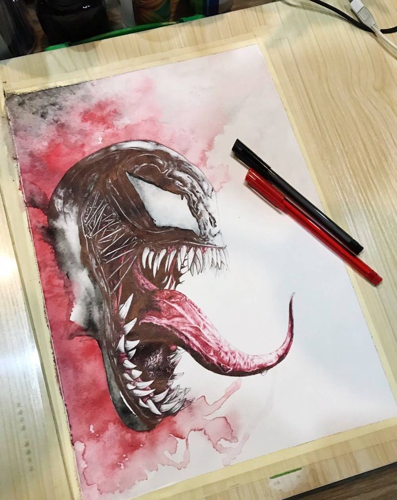毒液纹身图片_欧美写实插画手稿纹身图案