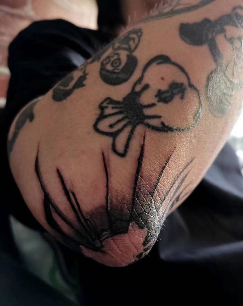 当前位置: 首页 >新疆乌鲁木齐市纹身店-鲲刺青纹身工作室纹身图案>破碎玻璃爆肘纹身图片_手臂Old School纹身图案