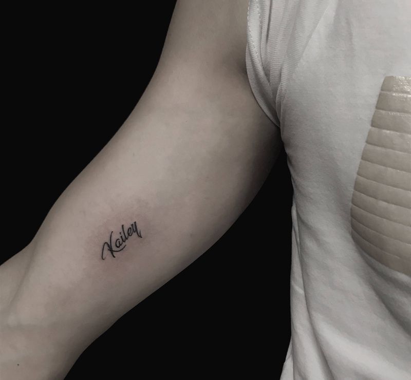 当前位置: 首页 >新疆巴音郭楞蒙古自治州纹身店-峯刺青Tattoo studio纹身图案>字母纹身图片_手臂花体字字母纹身图案