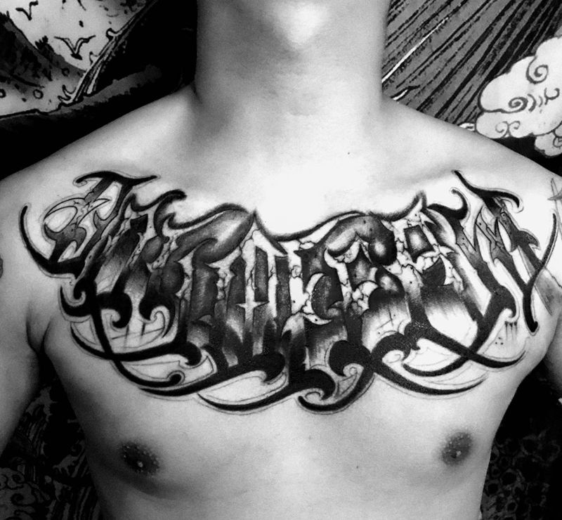 当前位置: 首页 >新疆巴音郭楞蒙古自治州纹身店-峯刺青Tattoo studio纹身图案>奇卡诺花胸纹身图片_胸部花体字奇卡诺花胸纹身图案