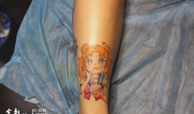 • T包小腿吹火男+阿多福纹身图片_腿部老传统新传统吹火男阿