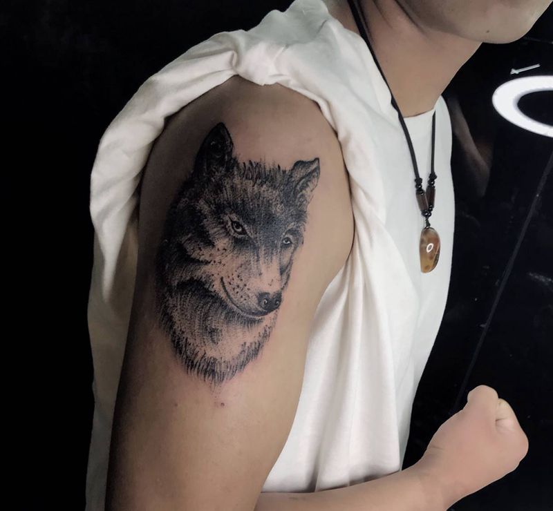 当前位置: 首页 >新疆巴音郭楞蒙古自治州纹身店-峯刺青Tattoo studio纹身图案>甩针/狼纹身图片_手臂新传统狼甩针纹身图案