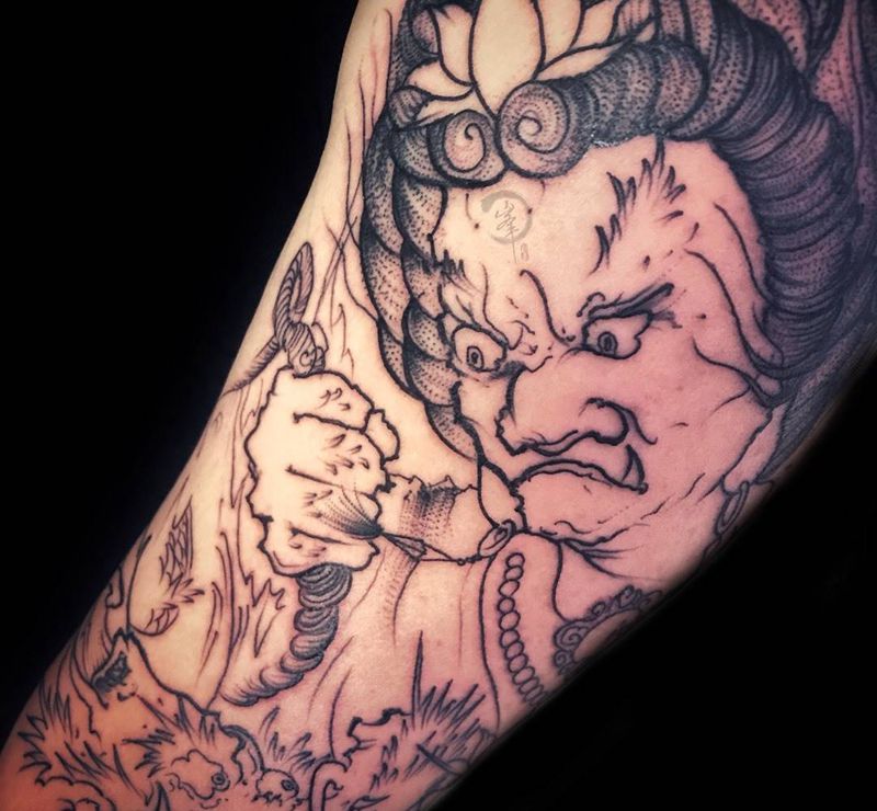 当前位置: 首页 >新疆巴音郭楞蒙古自治州纹身店-峯刺青Tattoo studio纹身图案>不动明王纹身图片_手臂新传统纹身图案