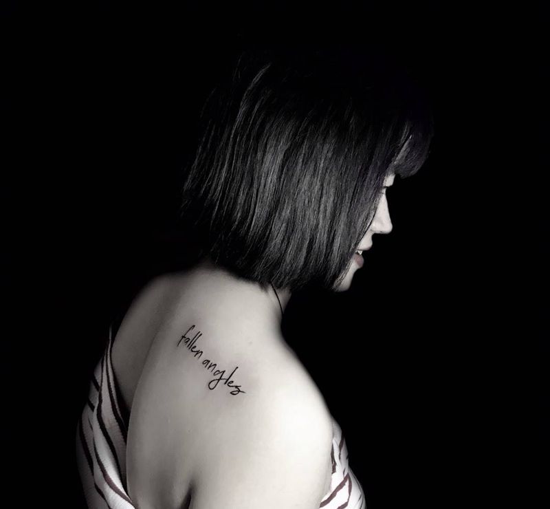 当前位置: 首页 >新疆巴音郭楞蒙古自治州纹身店-峯刺青Tattoo studio纹身图案>肩字母纹身图片_背部肩部花体字小清新字母纹身图案