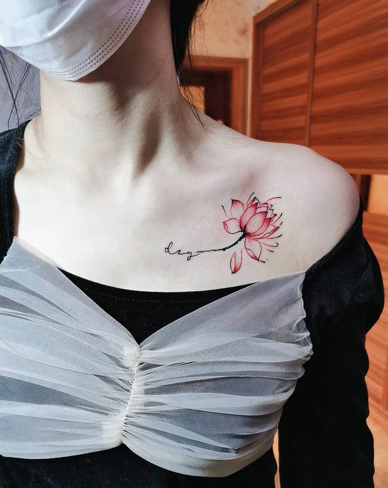 荷花纹身图片_肩部纹身图案