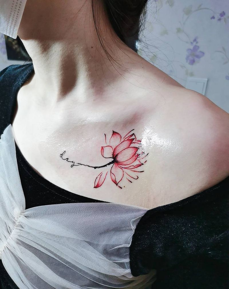 荷花纹身图片_肩部纹身图案