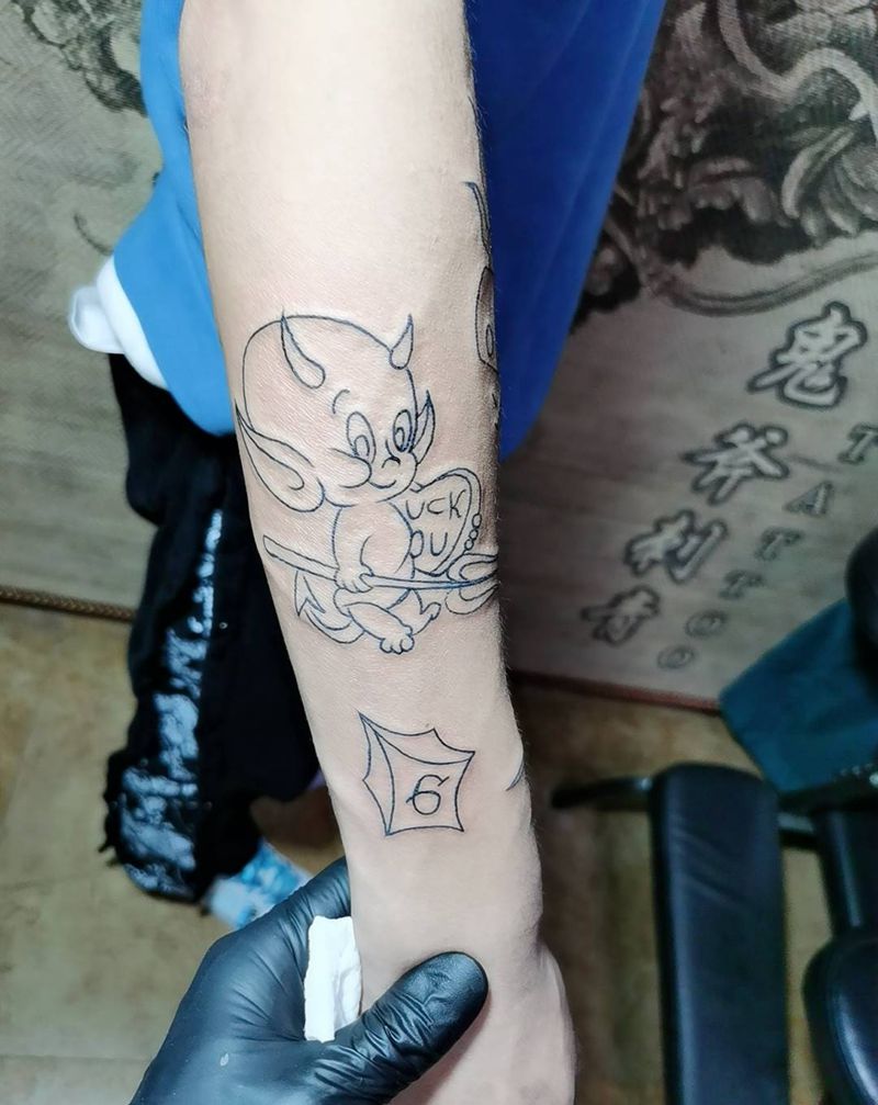 当前位置: 首页 >新疆巴音郭楞蒙古自治州纹身店-鬼斧·tattoo·刺青纹身图案>old school 半成品纹身图片_手臂Old School纹身图案