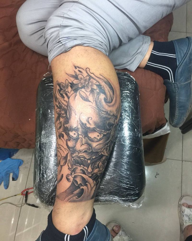 • T网红王老大花腿龙纹身图片_腿部新传统纹身图案