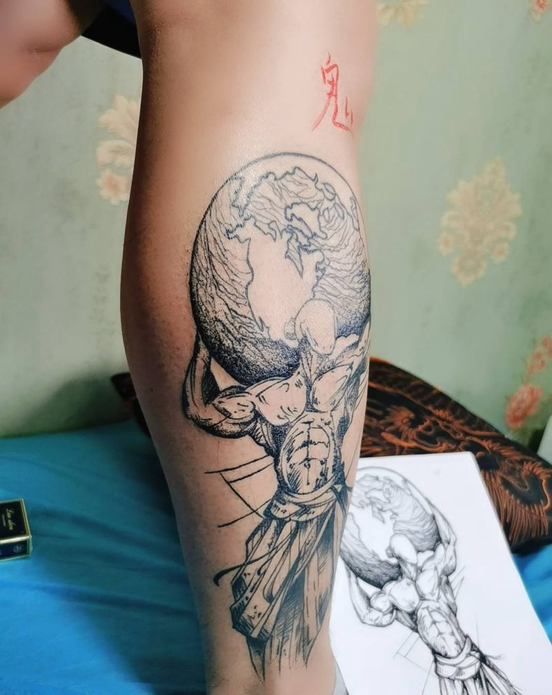 • T包小腿吹火男+阿多福纹身图片_腿部老传统新传统吹火男阿