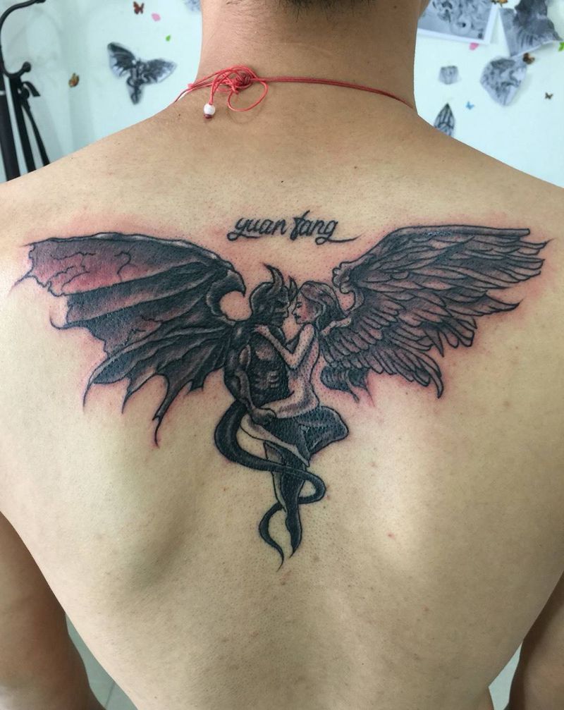 黑灰满背纹身图案
