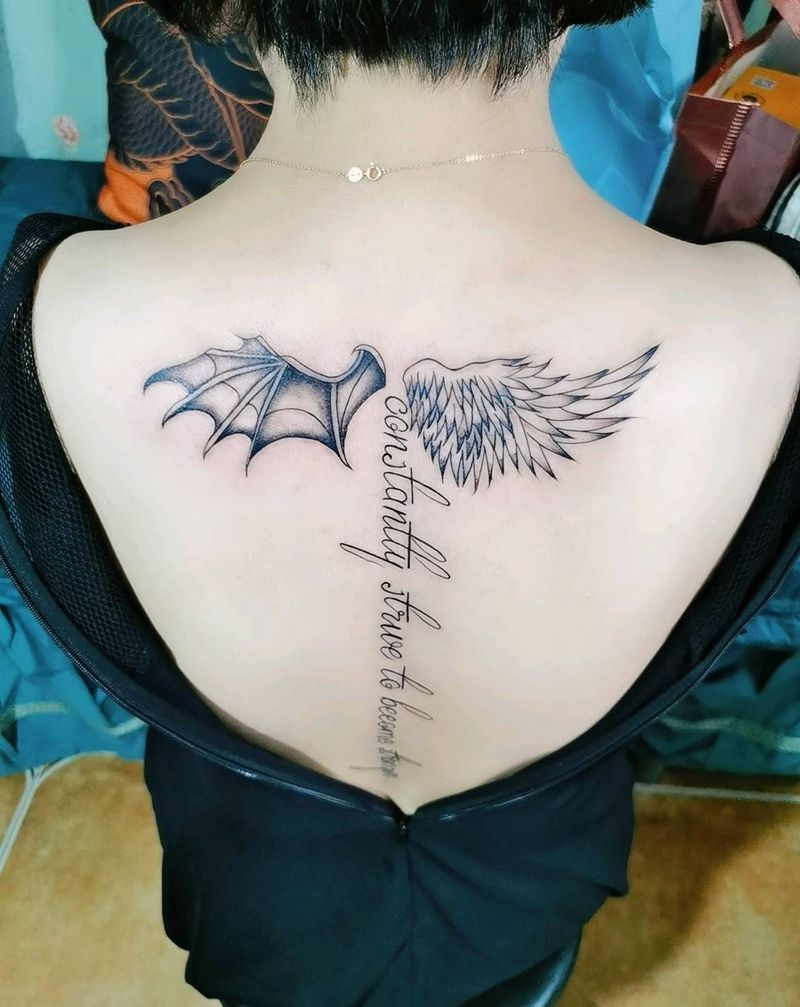 当前位置: 首页 >新疆巴音郭楞蒙古自治州纹身店-鬼斧·tattoo·刺青纹身图案>天使恶魔翅膀纹身图片_背部纹身图案
