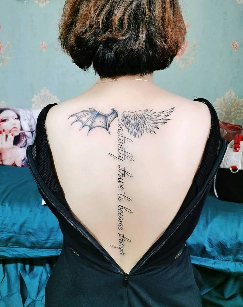 当前位置: 首页 >新疆巴音郭楞蒙古自治州纹身店-鬼斧·tattoo·刺青纹身图案>天使恶魔翅膀纹身图片_背部纹身图案