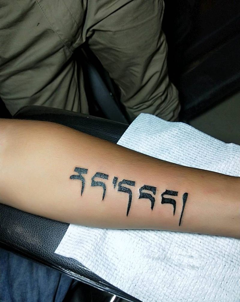 当前位置: 首页 >新疆巴音郭楞蒙古自治州纹身店-鬼斧·tattoo·刺青纹身图案>梵文纹身图片_手臂文字纹身图案
