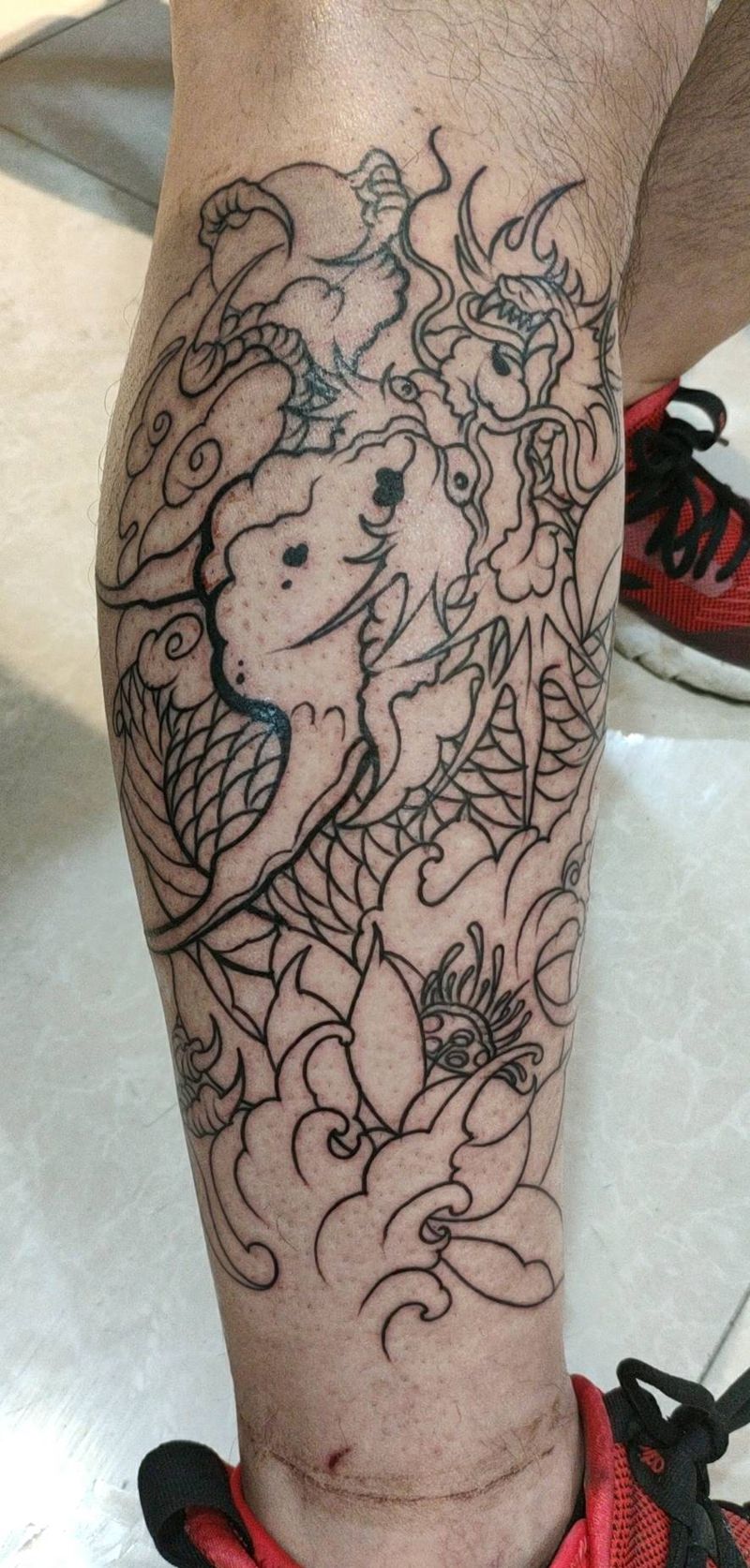 当前位置: 首页 >新疆巴音郭楞蒙古自治州纹身店-鬼斧·tattoo·刺青纹身图案>中国传统龙 线条纹身图片_腿部新传统纹身图案