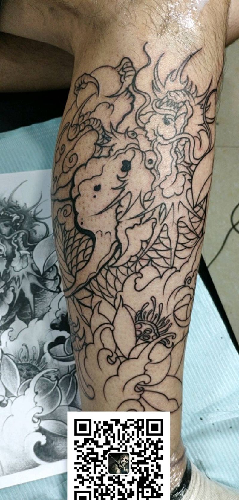 • T网红王老大花腿龙纹身图片_腿部新传统纹身图案