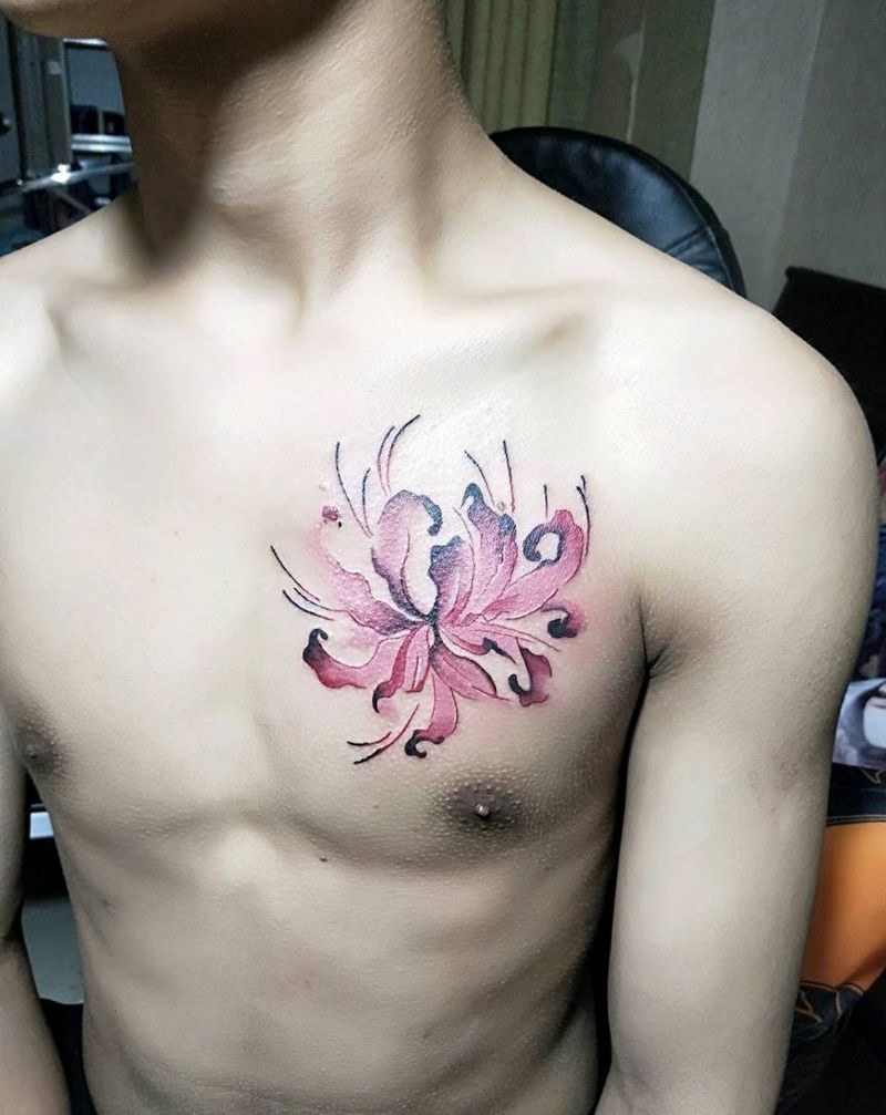 当前位置: 首页 >新疆巴音郭楞蒙古自治州纹身店-鬼斧·tattoo·刺青纹身图案>彼岸花纹身图片_胸部纹身图案