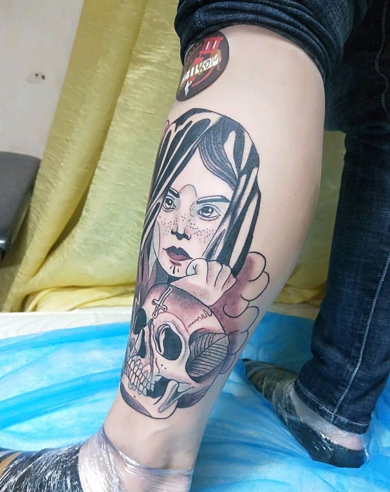 当前位置: 首页 >新疆巴音郭楞蒙古自治州纹身店-鬼斧·tattoo·刺青纹身图案>old school纹身图片_腿部Old School纹身图案