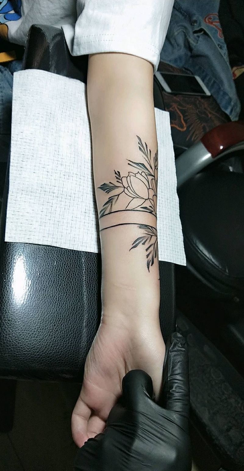 半成品 素花臂环纹身图片_手臂素花纹身图案