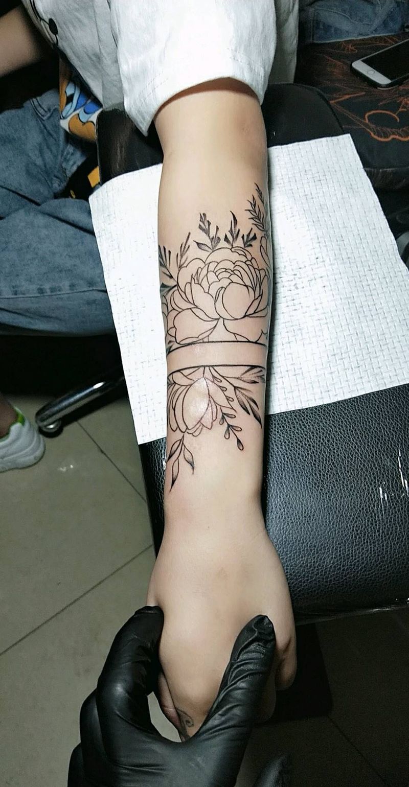 半成品 素花臂环纹身图片_手臂素花纹身图案