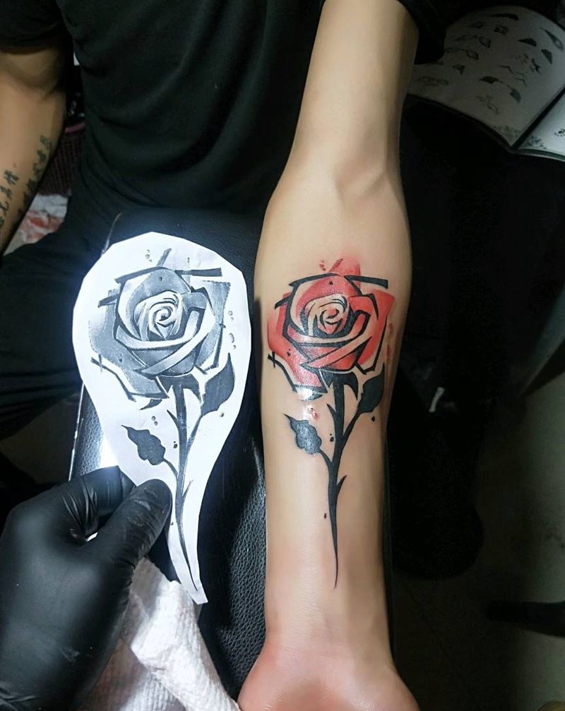 当前位置: 首页 >新疆巴音郭楞蒙古自治州纹身店-鬼斧·tattoo·刺青纹身图案>玫瑰纹身图片_手臂水墨水彩纹身图案
