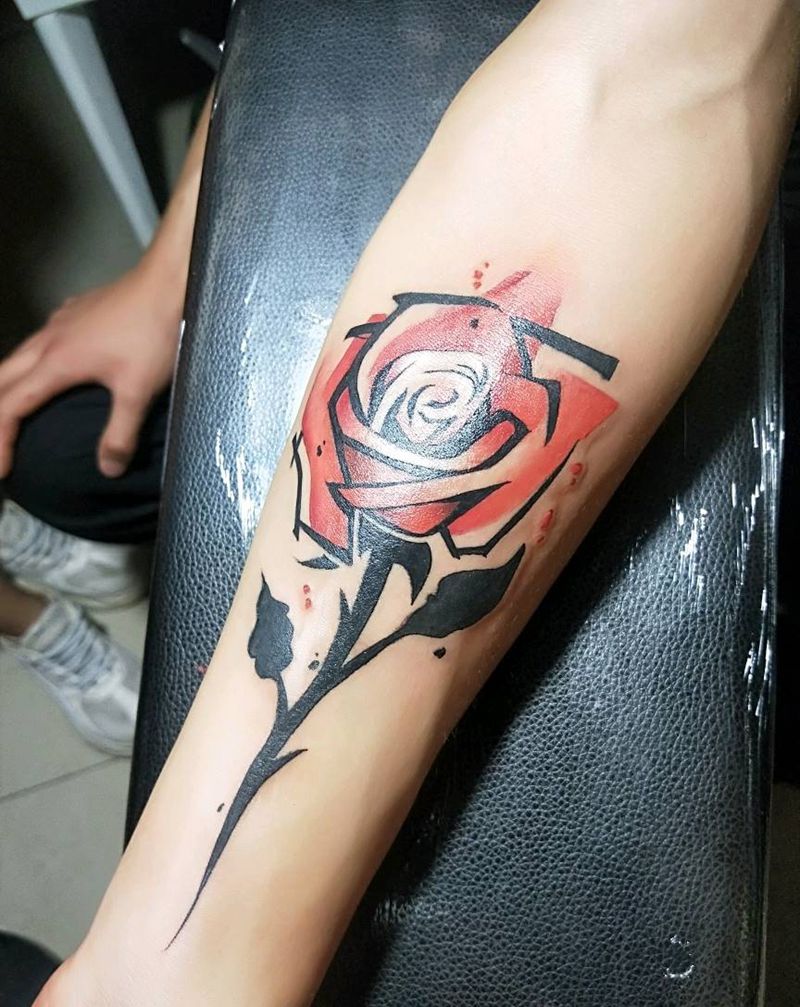 当前位置: 首页 >新疆巴音郭楞蒙古自治州纹身店-鬼斧·tattoo·刺青纹身图案>玫瑰纹身图片_手臂水墨水彩纹身图案