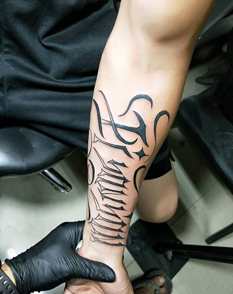 当前位置: 首页 >新疆巴音郭楞蒙古自治州纹身店-鬼斧·tattoo·刺青纹身图案>私人订制 花体 姓名纹身图片_手臂花体字私人订制纹身图案